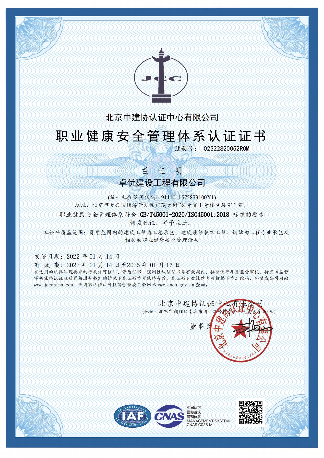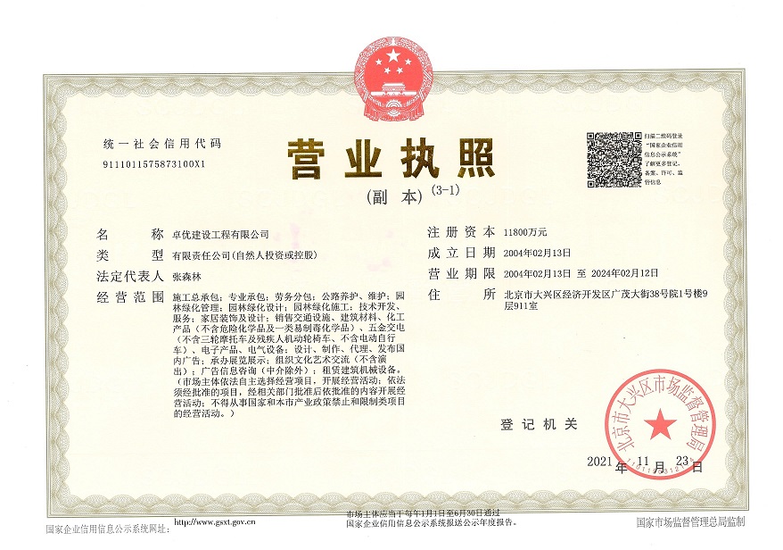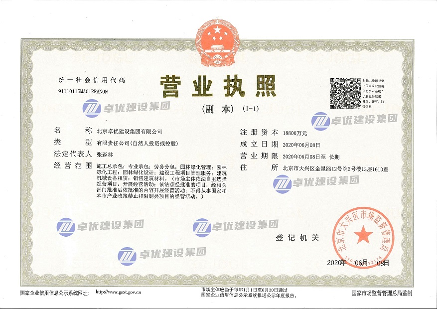 北京卓優(yōu)建設集團有限公司,注冊資金 1.88 億元,集團資質(zhì):