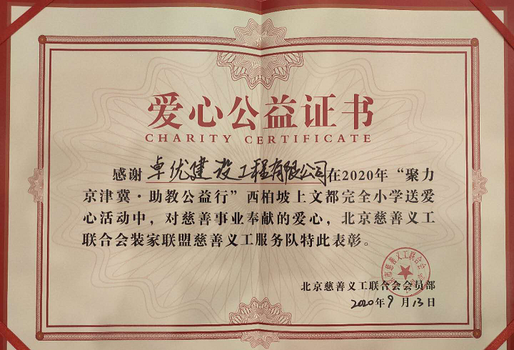 此次公益活動是卓優(yōu)建設(shè)集團一個新的起點,但絕不是終點,我們會在企業(yè)社會責(zé)任的道路上不斷努力,以優(yōu)良的作為回報社會,佳境漸入,實至名歸,將愛心圣火不斷的傳遞下去。