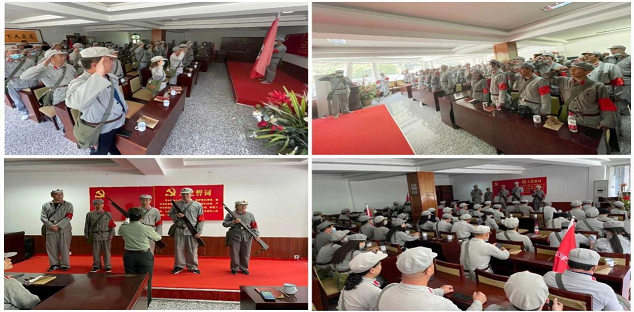 “我志愿加入中國(guó)共產(chǎn)黨,擁護(hù)黨的綱領(lǐng),遵守黨的章程,履行黨員義務(wù),執(zhí)行黨的決定,嚴(yán)守黨的紀(jì)律,保守黨的秘密,對(duì)黨忠誠(chéng),積極工作,為共產(chǎn)主義奮斗終身,隨時(shí)準(zhǔn)備為黨和人民犧牲一切,永不叛黨。”嘹亮的宣誓聲回蕩著,高舉的右手、鮮紅的黨旗、鏗鏘的誓詞,讓我們熱血澎湃,心靈受到震撼和洗禮。