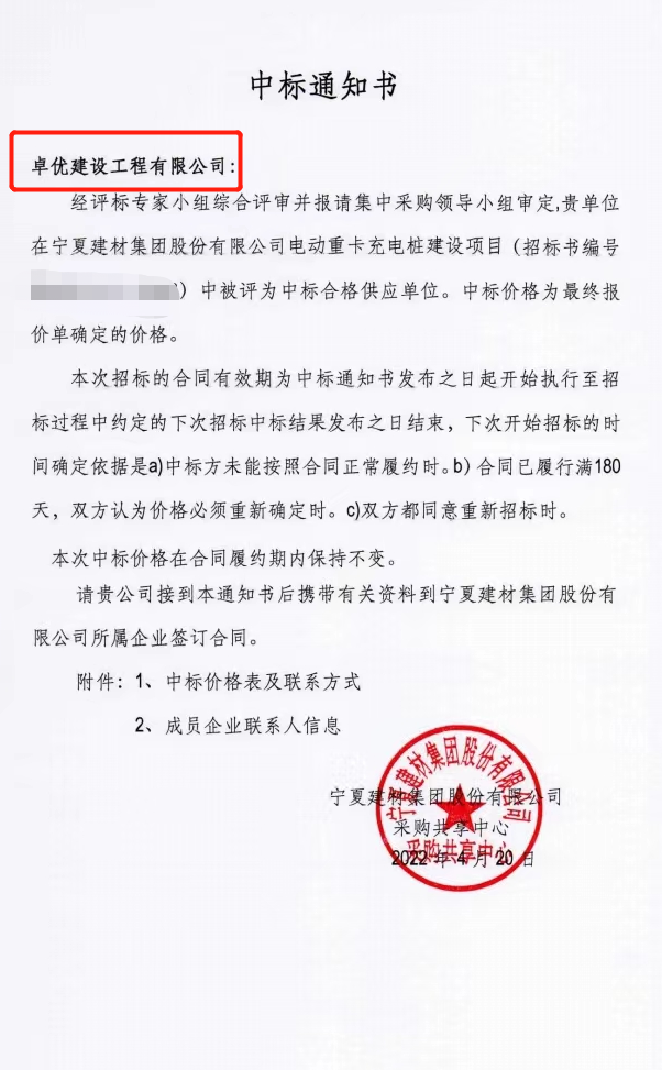 該項目位于寧夏賽馬水泥有限責(zé)任公司蘭山分廠、礦山分廠、寧東分廠廠區(qū)內(nèi),合同金額約1200000元。承包范圍包括滿足安全、環(huán)保、節(jié)能要求的充電樁項目設(shè)計、材料采購安裝;土建施工;電氣設(shè)備安裝;服務(wù)及施工資料交付等EPC 總承包工程。